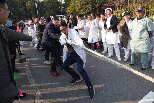 为迎接即将到来的新春佳节,更好地开展医院文化活动、丰富职工业余生活,1月25日下午3:00, 我院2019年迎新春职工拔河比赛隆重举行。