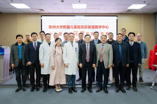 苏州大学附属儿童医院党委书记、院长王晓东、苏州大学附属儿童医院二级教授、首席专家、国家临床重点专科小外科学科带头人、院学术委员会主任汪健、苏州大学附属儿童医院院长助理、医务处处长李建琴、以及苏州大学附属儿童医院相关临床科室、职能科室代表出席仪式。我院党委书记高嵘、院长屈陈江、副院长沙卫平以及相关临床科室代表参加。仪式由沙院长主持。