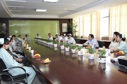座谈会上,朱院长对我院护理工作取得的成绩给予了充分肯定,并代表班子领导对全院护理人员致以节日的问候。朱院长说,护理工作神圣而伟大,在目前人们的医疗需求不断增加,对医疗工作要求不断提高的情况下,护士工作压力大、责任重显而易见,但只要大家用心去做,总会得到社会的认可。院部也会尽最大的努力,增加床护比,提高护士待遇,减轻工作压力。朱院长希望全体护理人员继承和发扬护理事业的光荣传统,爱岗敬业,勤奋学习,开拓创新,不断提升护理内涵质量,和谐护患关系。