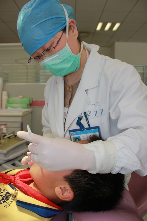 为有效降低我市儿童龋患率,促进学生口腔健康,结合国家慢性病综合防控示范区创建等工作要求,5月22日,我院口腔科在丁卫华主任带领下,为首批来自市暨阳小学三年级学生进行口腔窝沟封闭和龋齿充填工作,由此正式拉开了我院开展全市适龄儿童口腔窝沟封闭工作的帷幕。