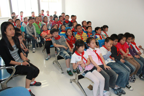 首批来院的暨阳小学师生们,认真观看了口腔卫生健康教育宣传片,我院口腔科医生中午无休、加班加点,对每位学生都进行了检查和治疗。