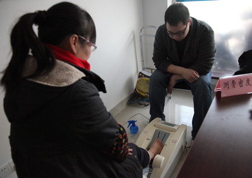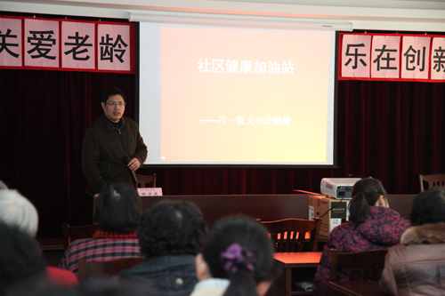 活动现场设健康知识讲座、免费检测和专家答疑三个环节,首先由骨科田守进主