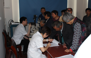 在眼科主任浦利军的带领下,我院眼科黄爱萍、吴志贤、赵琪、孙丽红、顾红艳等多位医护人员热情服务社区居民,认真询问老人眼睛的详细情况,为老人们进行视力、裂隙灯、眼底检查,宣传白内障知识,使大家了解白内障的成因、危害、预防以及如何进行治疗,并建立了居民健康档册,同时还提供了其它眼病的咨询活动,为社区居民现场答疑解惑,免费发放健康宣传手册。