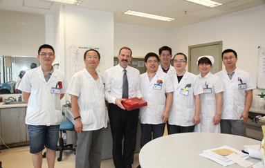 此次Michael Ries教授来院与我院骨科副主任田守进一同演示人工全膝关节置换术,我院多名骨科医师全程观摩手术过程。手术患者为64岁女姓,由于类风湿性关节炎,左膝疼痛,不能负重行走,屈曲畸形30度,内翻10度,活动度仅30度。在1个多小时的手术中,这位美国骨科专家展示了其精湛的手术技巧和认真负责的敬业精神,手术效果赢得了现场同行的赞许与敬佩。
