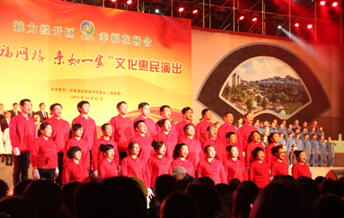 10月25日晚,我院党委携手西城第五区域共建单位共同参与了“幸福网格 亲如一家”文化惠民演出。在当?的演出中,经过半个多月的辛苦排练,由我院合唱队成员共同参与的合唱《张家港精神之歌》铿锵有力、雄壮激昂、令人振奋,精彩的表演赢得了现场观众的阵阵掌声。