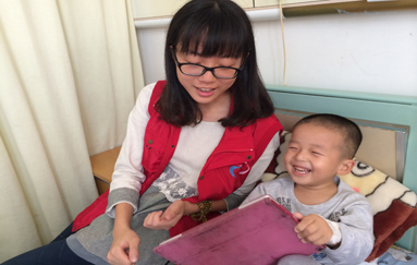 同学们的到来受到医护人员、患儿家长及患病儿童的热烈欢迎。志愿者们在儿科医护人员、社工部老师的带领下,先进入病房与患儿及其家长进行真诚沟通与交流,渐渐打开患儿的心扉。开始孩子们试探着与志愿者们接触,慢慢地把志愿者同学当成了自己的大哥哥大姐姐,和他们一起聊天、讲故事、唱歌跳舞玩游戏。稚嫩的歌声、笑声蔓延开来,新儿科病房里充满了温暖活跃的气息。