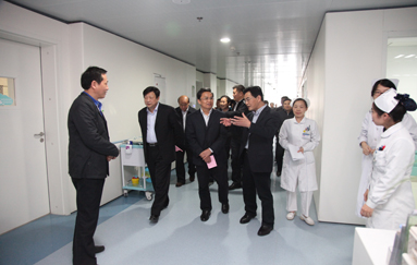 11月19日下午,市人大常委会主任高建刚一行20余人就我市实事工程——我院妇儿楼工程进行实地视察。张家港市卫生局局长朱兴华、副局长朱贤、我院院长王树生、副院长仲伟军及党委副书记曹剑波陪同视察。