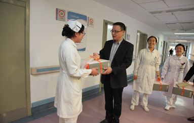 每到一处,院领导等将精心准备的节日蛋糕亲切地送到护士们的手中,并附上关切的话语:“你们辛苦了,祝你们节日快乐!”同时嘱咐他们注意身体健康,活出美丽人生。